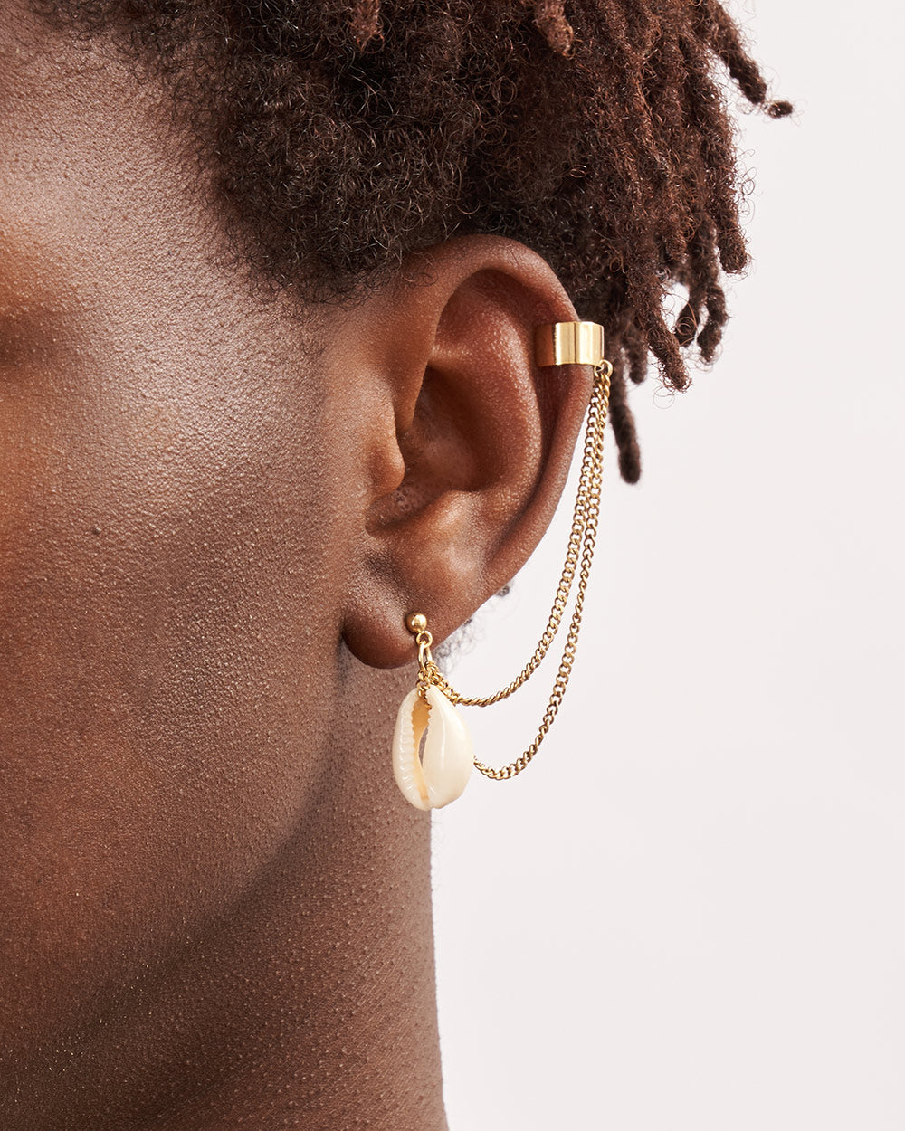 L' orecchino ha un cerchio apribile e regolabile da applicare nella parte superiore dell’orecchio senza il bisogno che esso sia perforato.